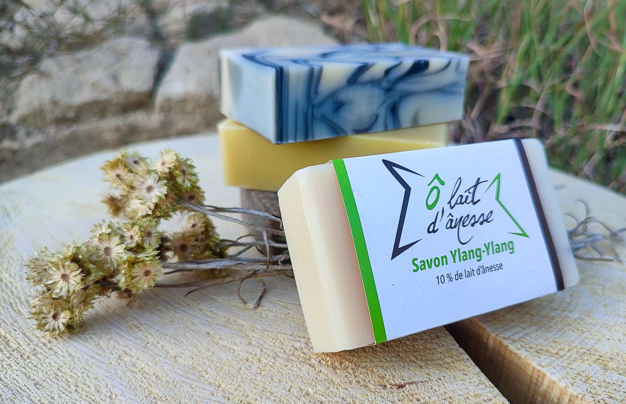 Élevage d'ânes et production de lait d'ânesse, fabrication de savons et cosmétiques bio au lait d'ânesse.