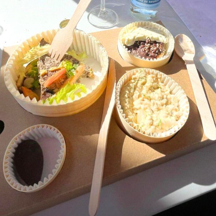 Le Pique-nique étoilé à emporter par le chef Adrien Descouls sont une véritable expérience gastronomique en plein air. La présentation est à la fois originale et pratique, pensée avec soin pour allier élégance et confort. Chaque bouchée révèle la finesse et la maîtrise du chef, avec des produits savamment travaillés et des saveurs raffinées. Un pique-nique d’exception, alliant gourmandise et haute cuisine.