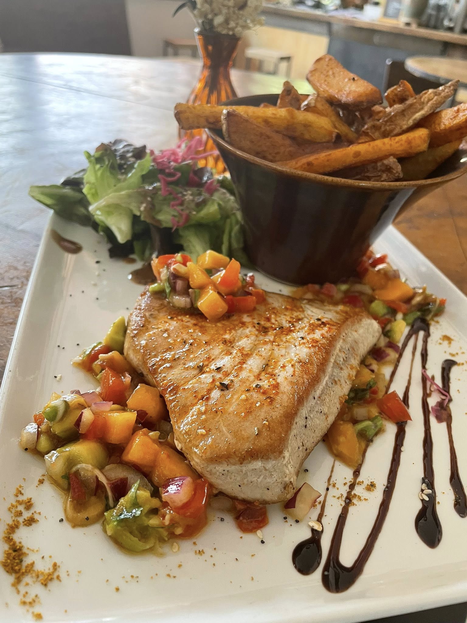 La carte du midi (burgers, poissons, viandes) est différente de celle du soir (pizzas et spécialités)