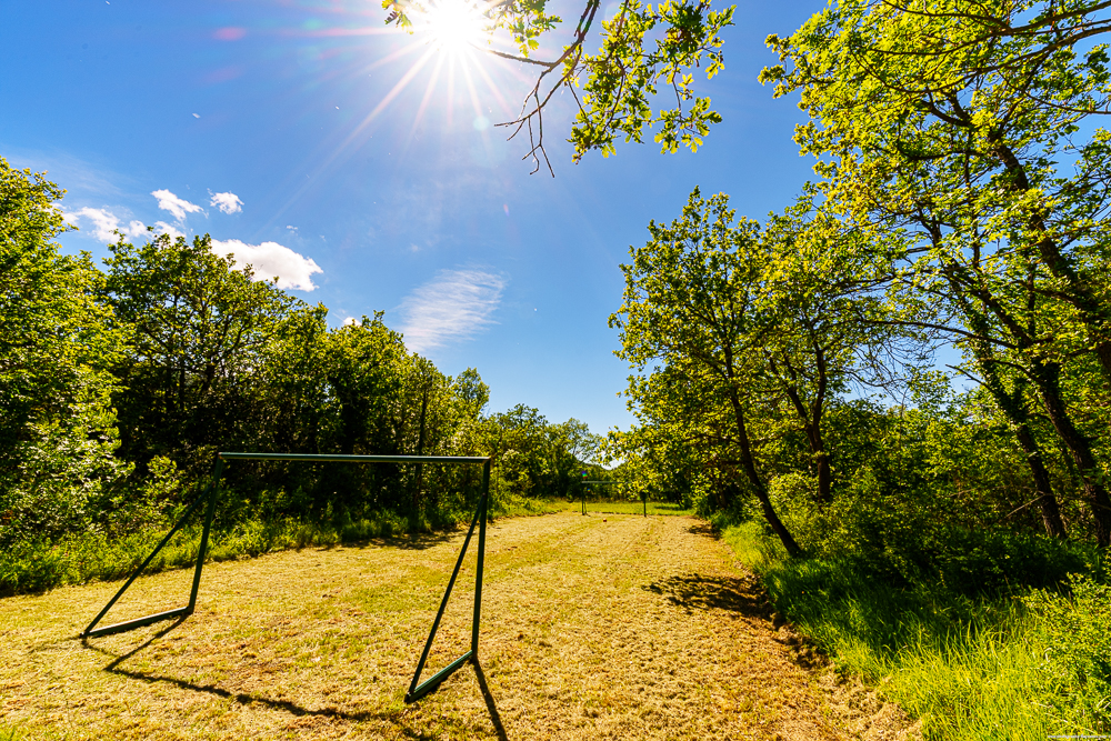 de foot, terrain de volley, trampoline, accès rivière, champs de lavande,...