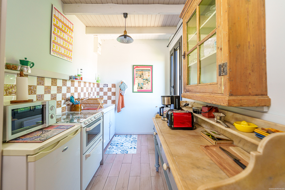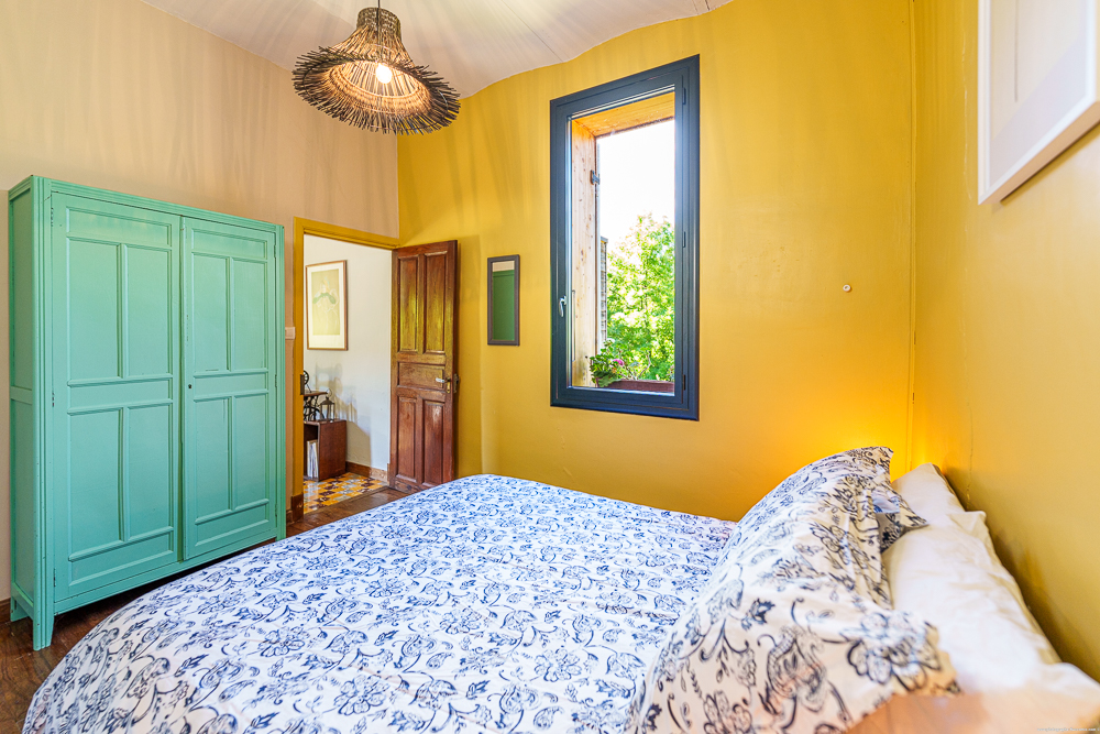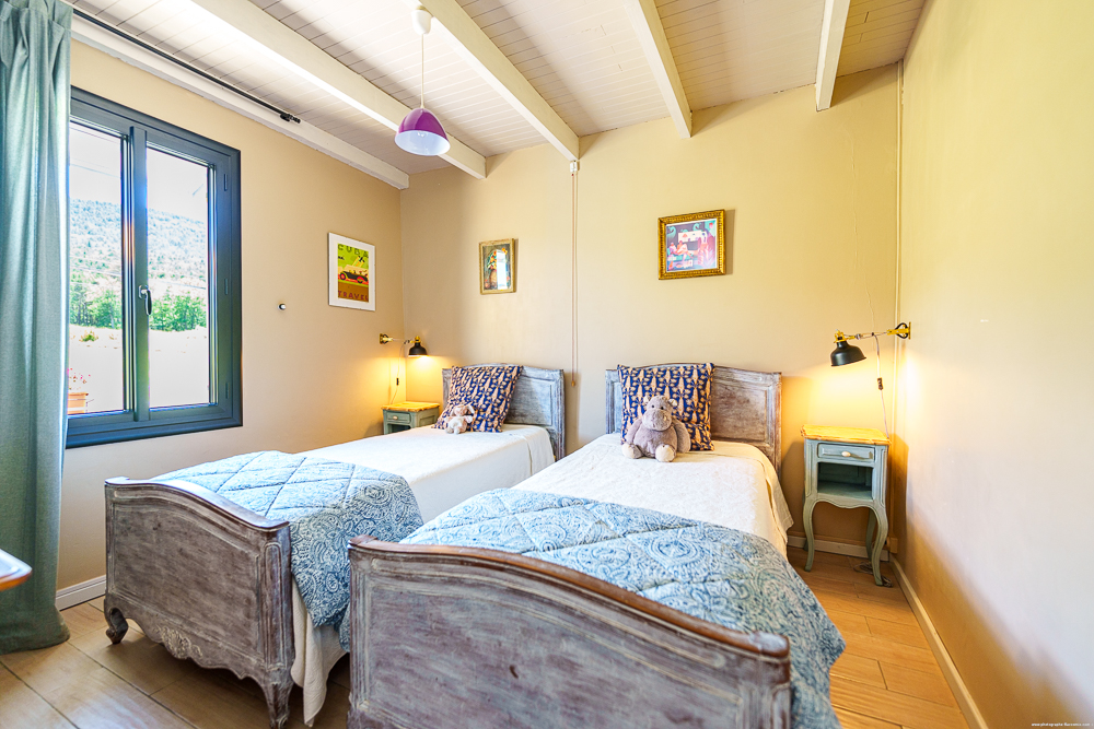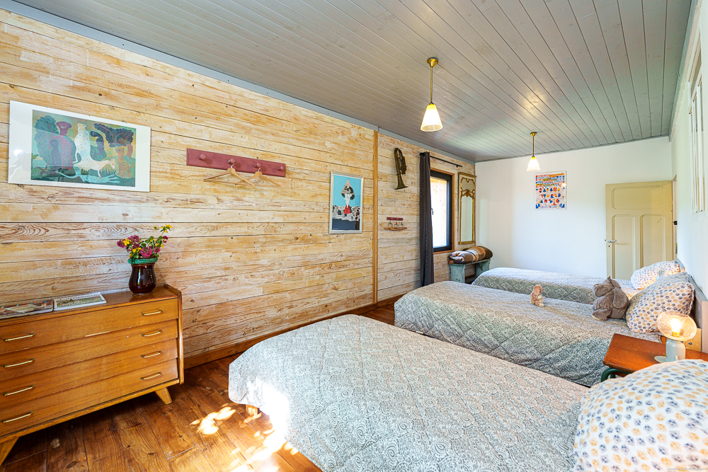- Deux chambres : une avec lit double (160 cm), une deuxième avec deux lits simples (90 cm)