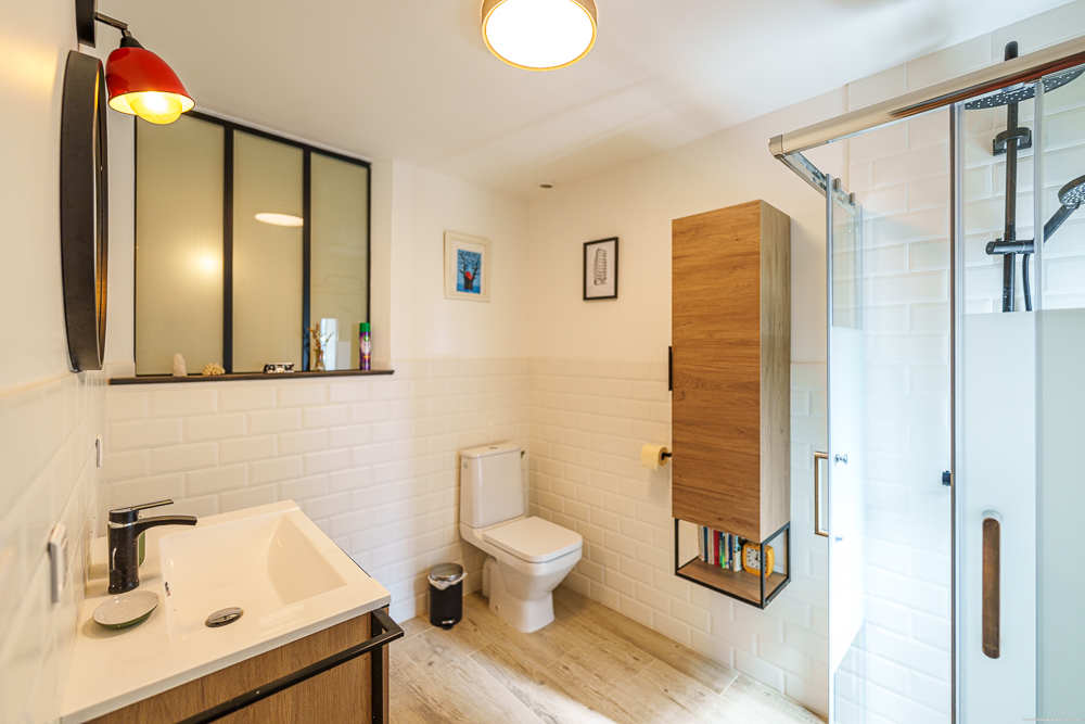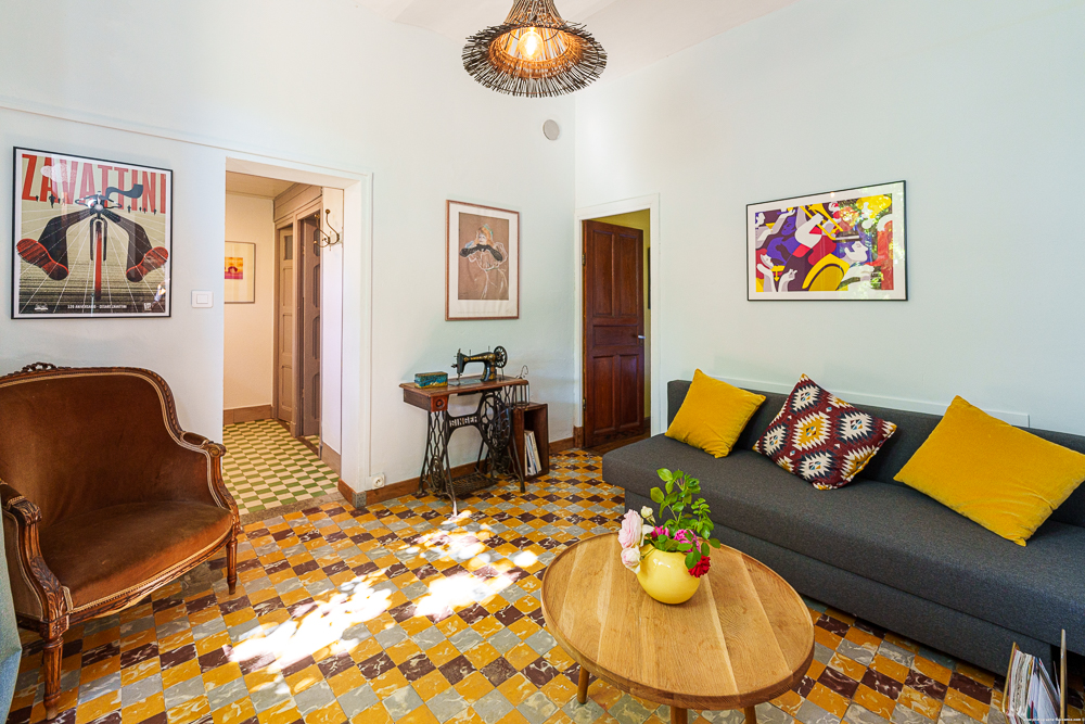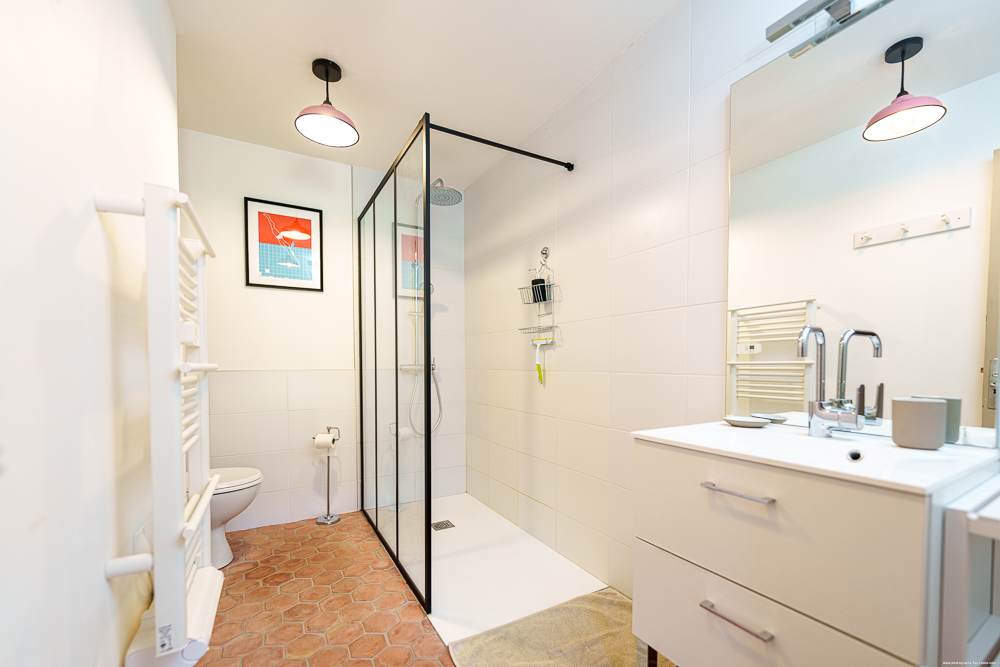 - Une suite parentale comprenant un petit salon (avec canapé-lit pour 2 personnes), une chambre (lit double) et une salle de bain avec baignoire rétro, douche et WC.