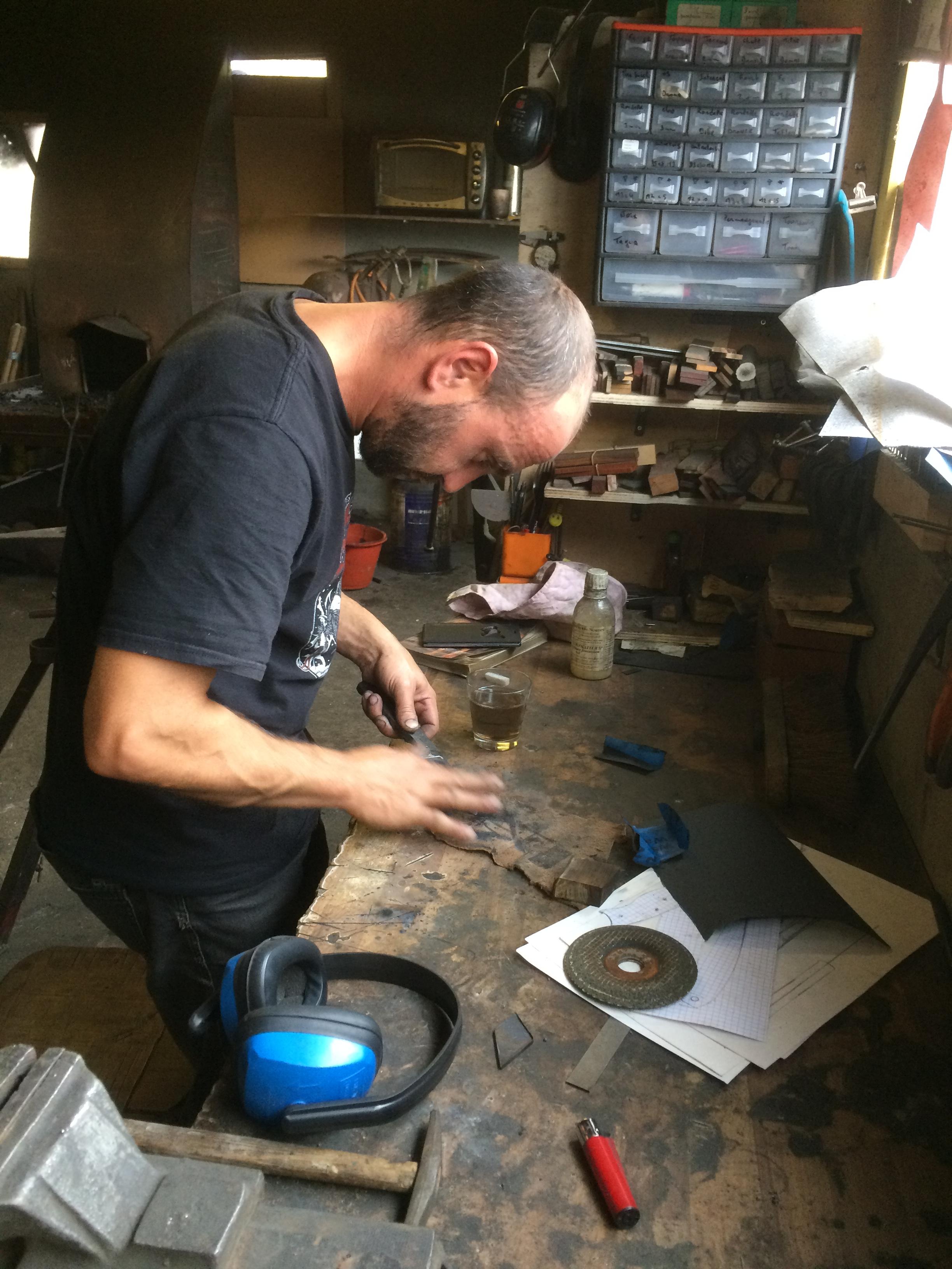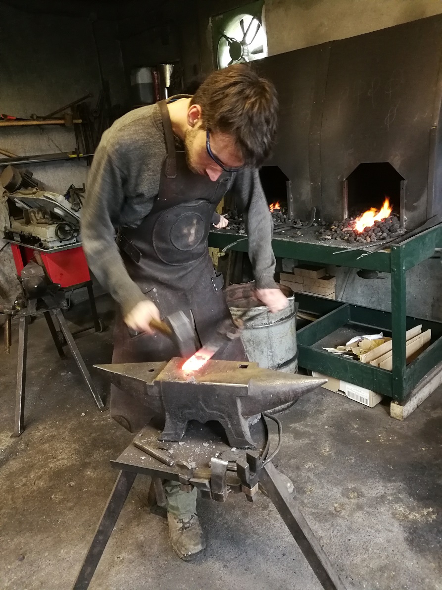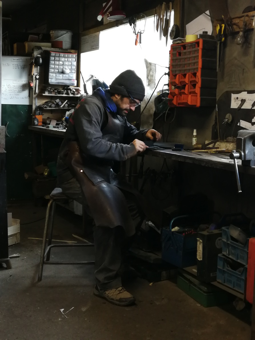 J'exerce le métier de forgeron coutelier et réalise des couteaux sur mesure et des pièces uniques tout en donnant une dimension contemporaine à l’univers de la forge. Stages d'initiation à la coutellerie. J'organise également des stages d’initiation à la coutellerie sur 2 ou 3 jours ayant pour but de voir les différentes étapes de la fabrication d’un couteau et de repartir avec sa création.