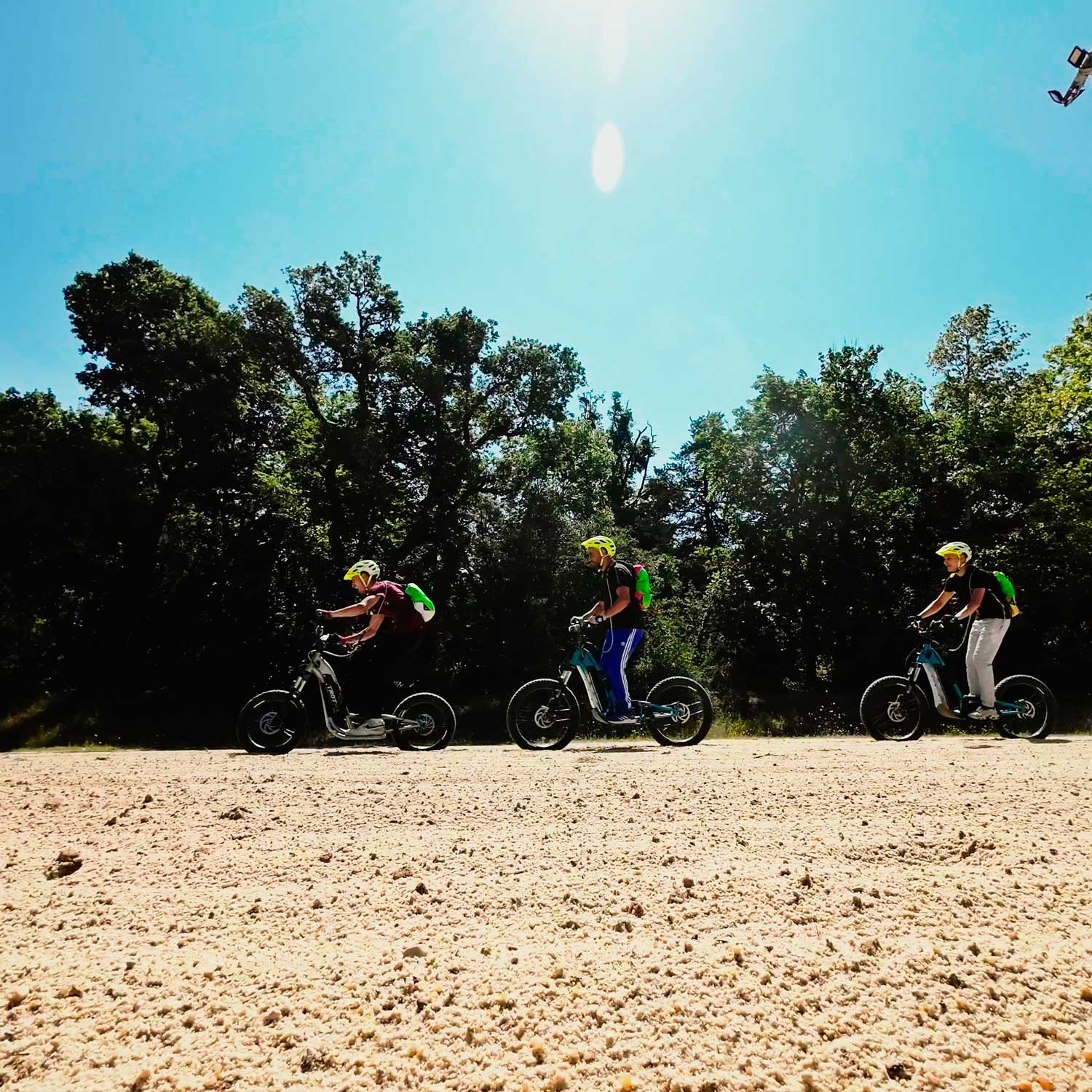 Location de Trottinettes Electriques Tout Terrain - Drôme des Collines : Balades Vertes (différentes balades adaptées à votre niveau), Balades Gustatives (au choix : Apéritif / Goûter en Trot...) & Balades TrotX3 ( Challenge, Essouflante...)