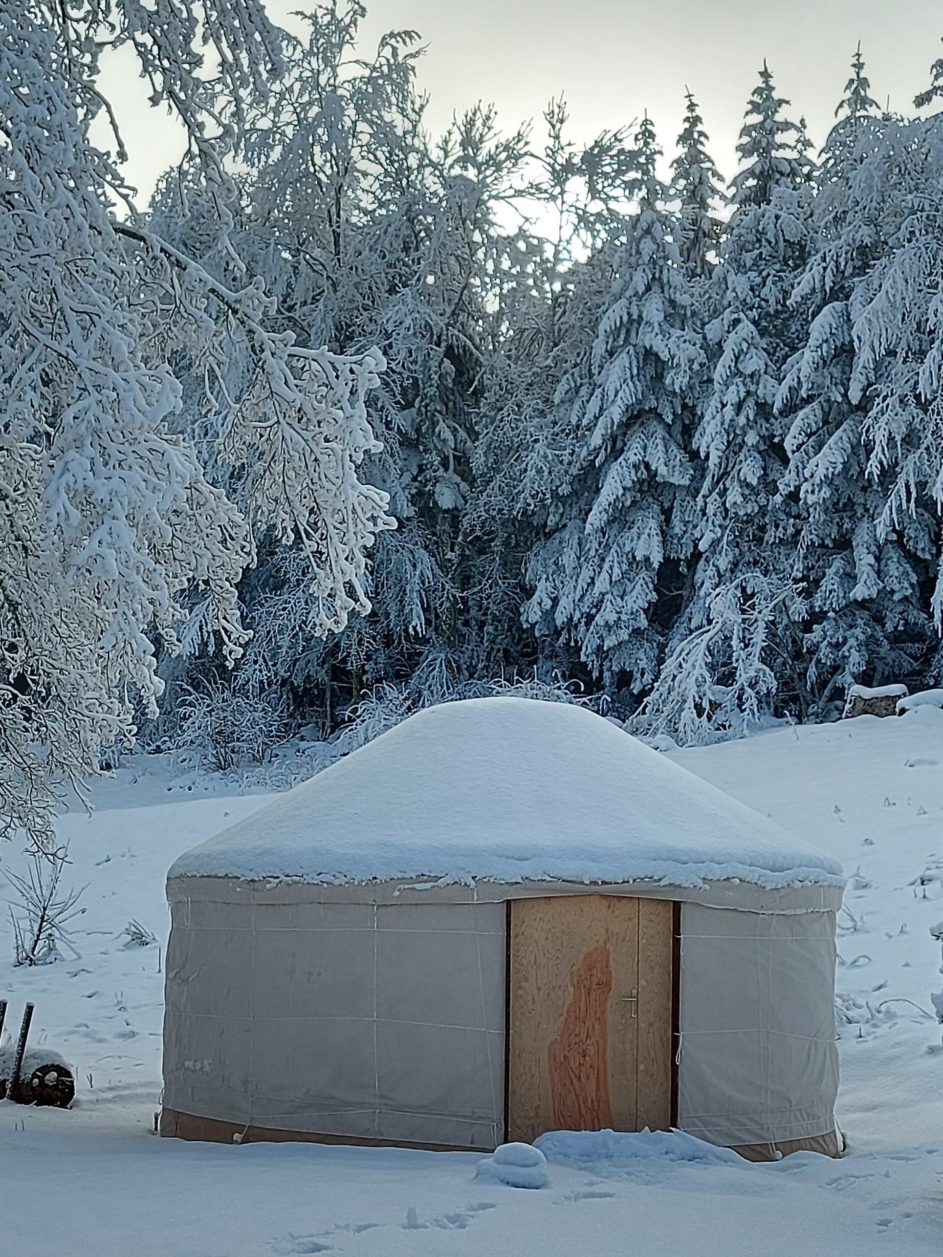 3 tipis bois (12 personnes) et 4 yourtes chauffées (17 personnes) dont 1 accessible PMR, qui s'intègrent parfaitement dans ce cadre au naturel. Dans le bâtiment principal, pièce de vie (cheminée), espace détente, sanitaires et WC collectifs. Trois salles de séminaires et ressourcement, un espace massage et bien être sur place. Yoga et méditations. Repas sur réservation. Couchages supplémentaires dans gîte de groupe (42 personnes). Randonnées, VTT, balade en forêt, raquettes en hiver.