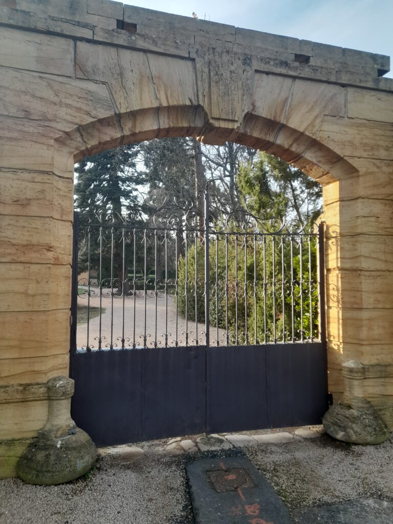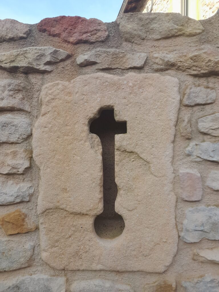 Autour, on admire des maisons en pierres dorées, certaines aux volets rouges ou violets, ainsi que de grandes demeures ornées de grands portails en fer forgé.